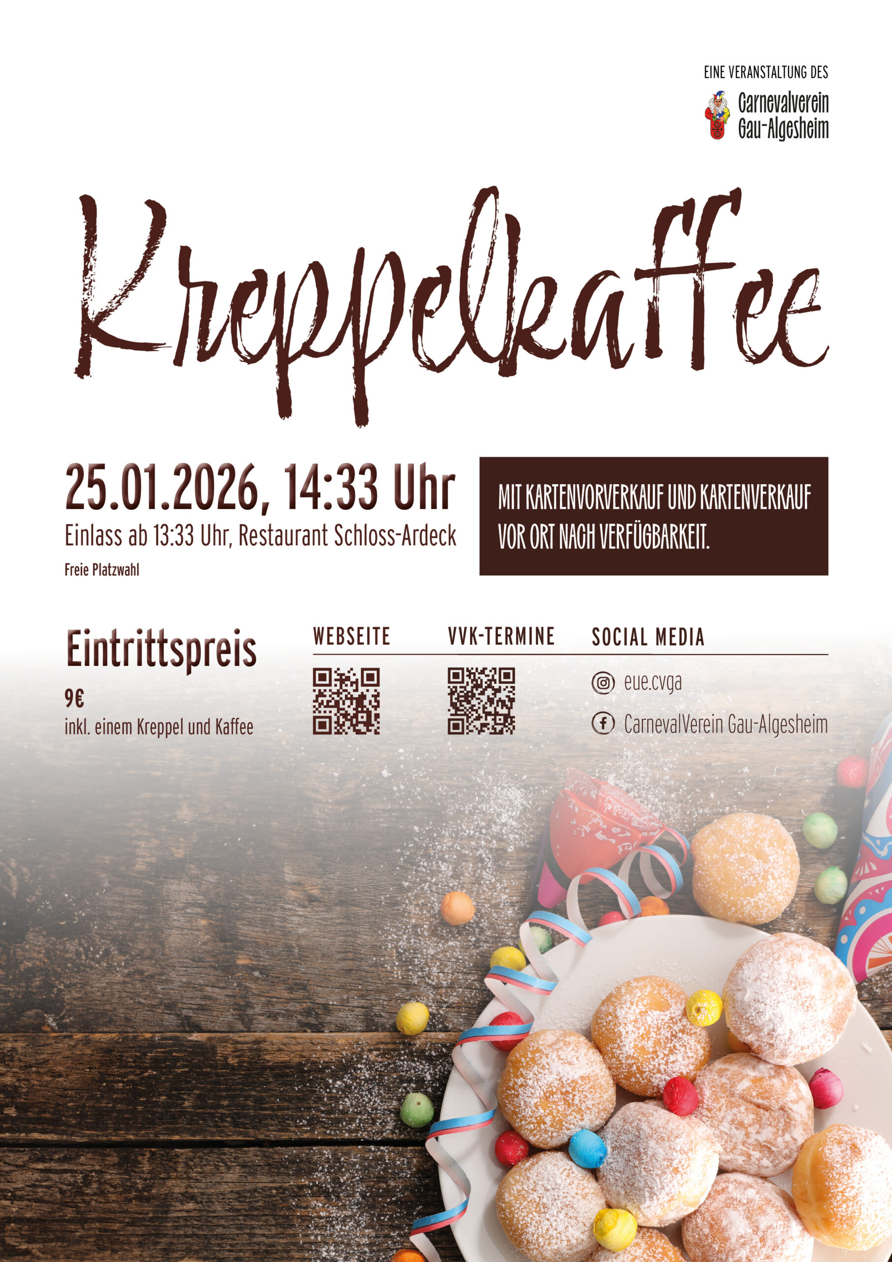 Liebe Gäste aus nah und fern, beim CVGA sehen wir euch alle gern, begrüßen euch zur Fassenacht, die allen eine große Freude macht. Seid dabei beim Fastnachtstreiben, allen soll es Spaß bereiten.